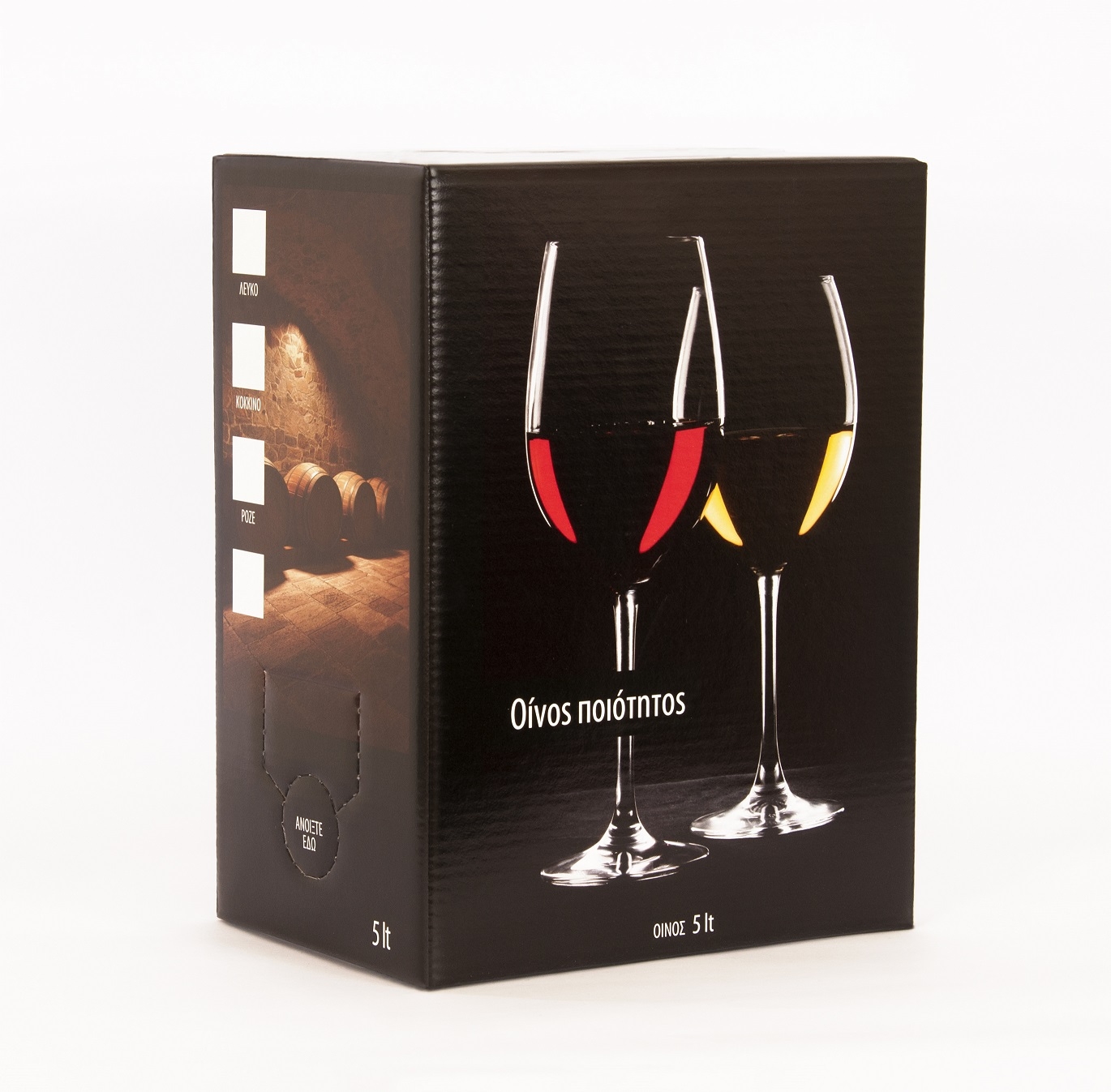 - Όλα τα χαρτοκιβώτια φέρουν ενδείξεις για "λευκό", "ροζέ" ή "ερυθρό" οίνο καθώς και εγκοπή για τη μεταφορά τους. - Το χαρτοκιβώτιο κλείνει πάνω με χρήση ταινίας και κάτω αυτόματα.