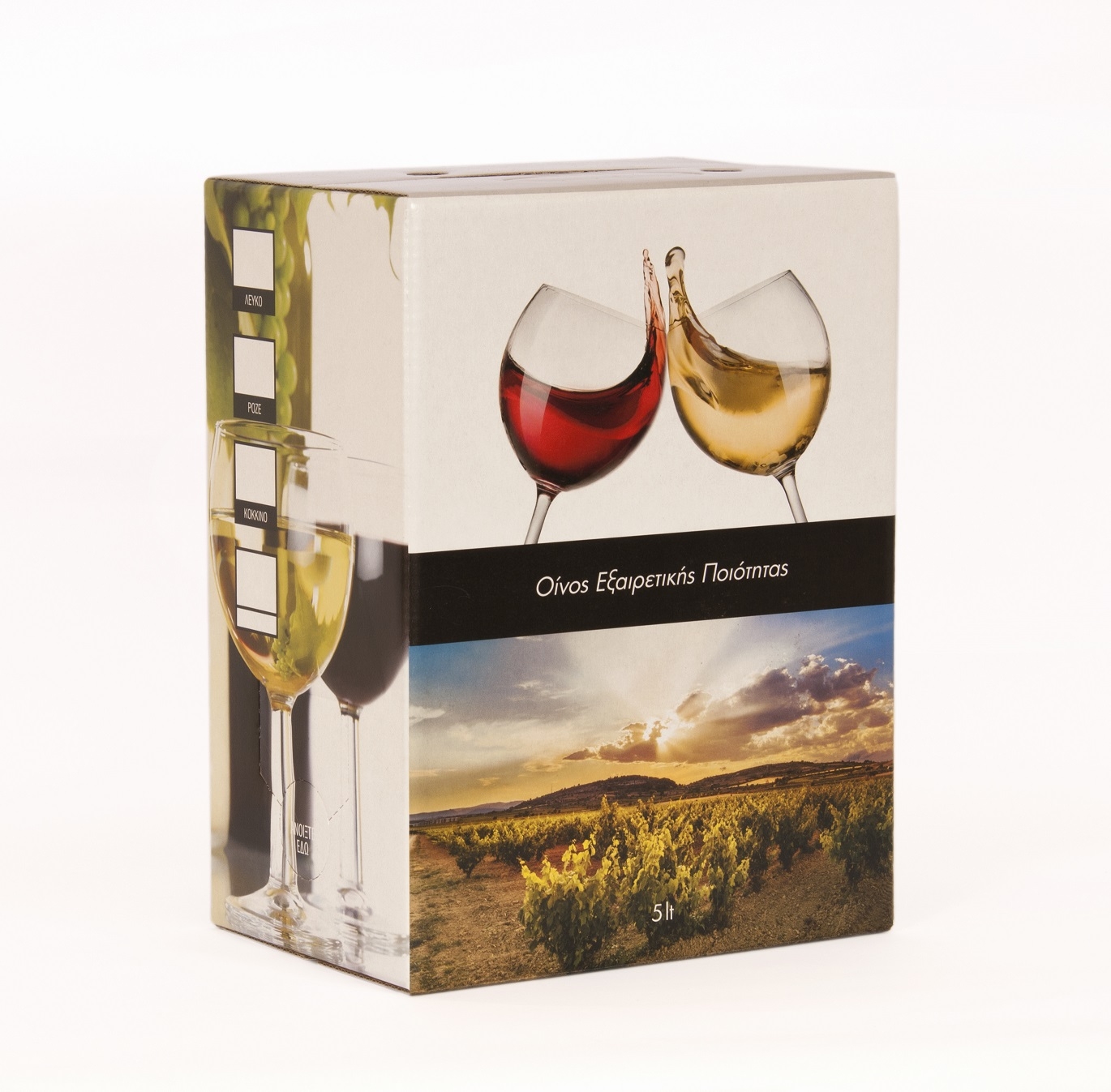- Όλα τα χαρτοκιβώτια φέρουν ενδείξεις για "λευκό", "ροζέ" ή "ερυθρό" οίνο καθώς και εγκοπή για τη μεταφορά τους. - Το χαρτοκιβώτιο κλείνει πάνω και κάτω με χρήση ταινίας.