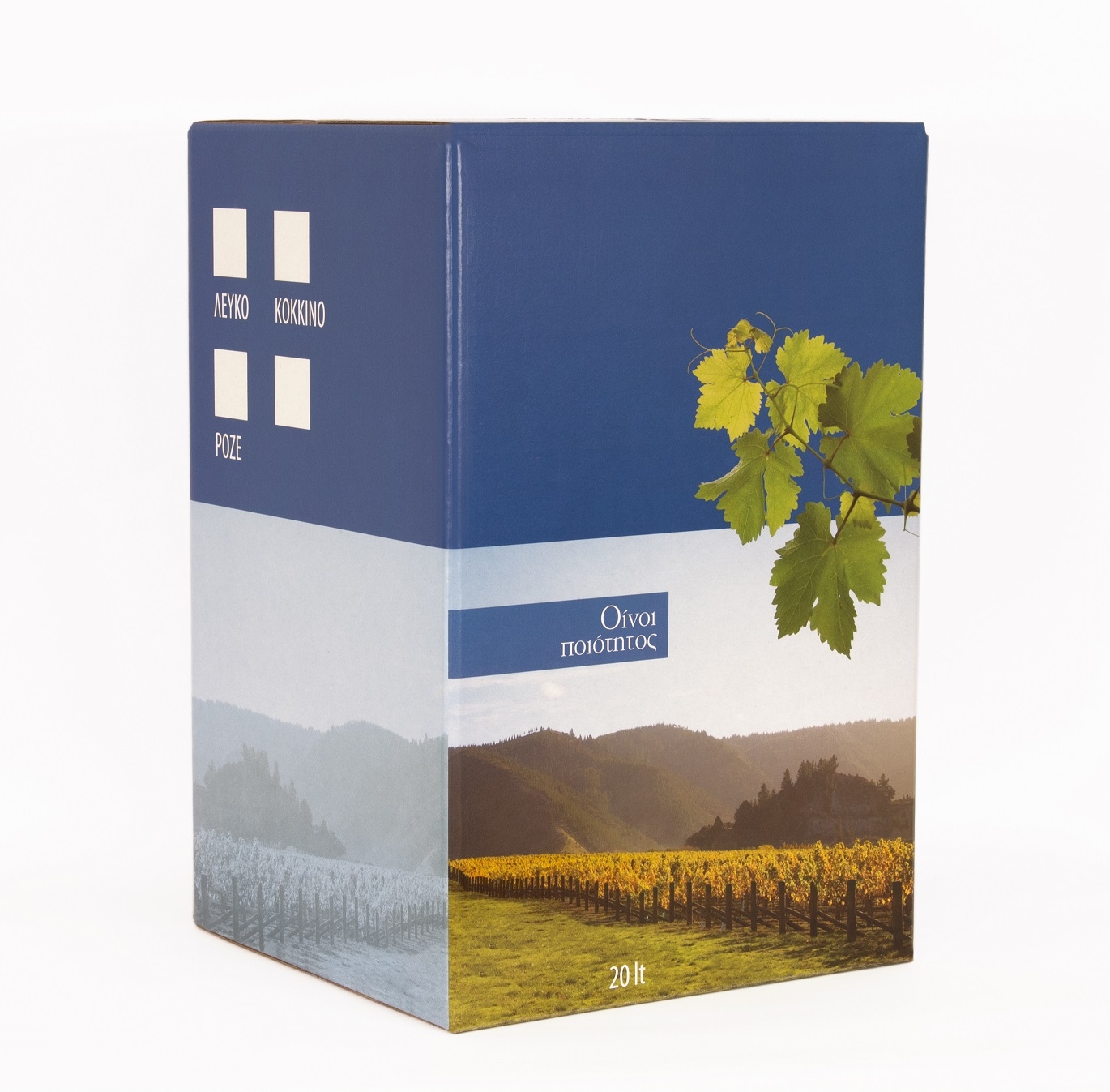 - Όλα τα χαρτοκιβώτια φέρουν ενδείξεις για "λευκό", "ροζέ" ή "ερυθρό" οίνο καθώς και εγκοπή για τη μεταφορά τους. - Το χαρτοκιβώτιο κλείνει πάνω και κάτω με χρήση ταινίας.