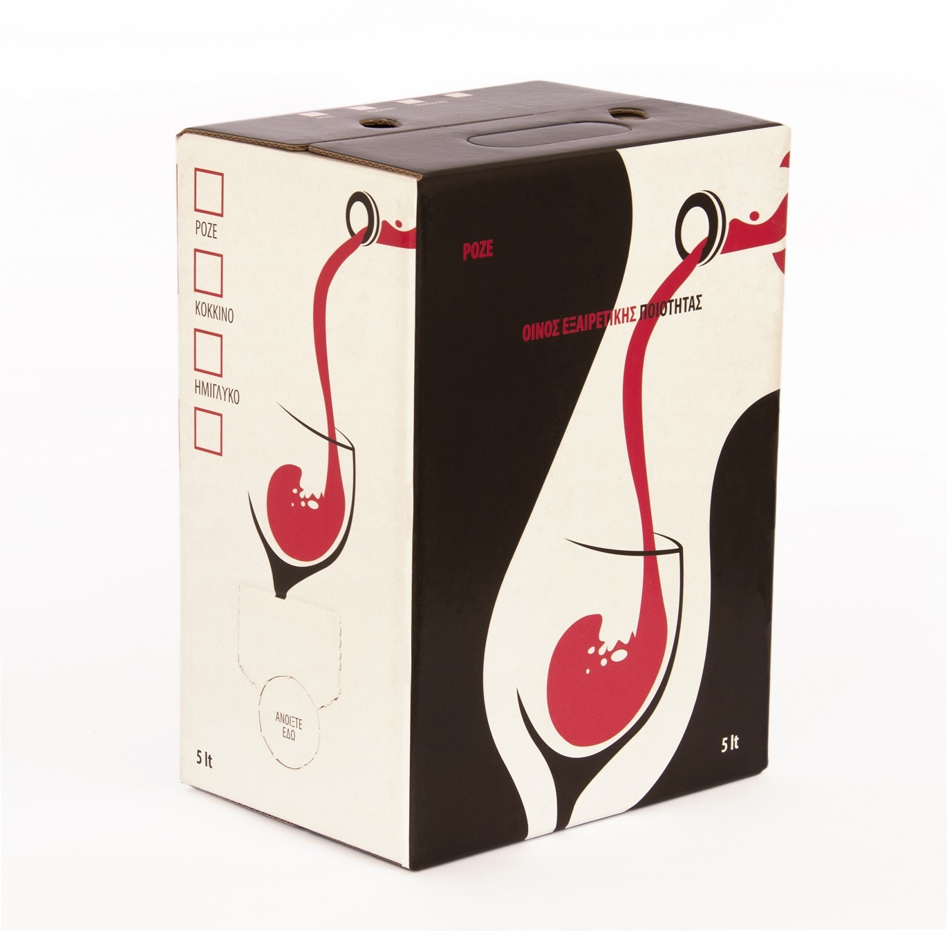 - Όλα τα χαρτοκιβώτια φέρουν ενδείξεις για "λευκό", "ροζέ" ή "ερυθρό" οίνο καθώς και εγκοπή για τη μεταφορά τους. - Το χαρτοκιβώτιο κλείνει πάνω και κάτω με χρήση ταινίας.