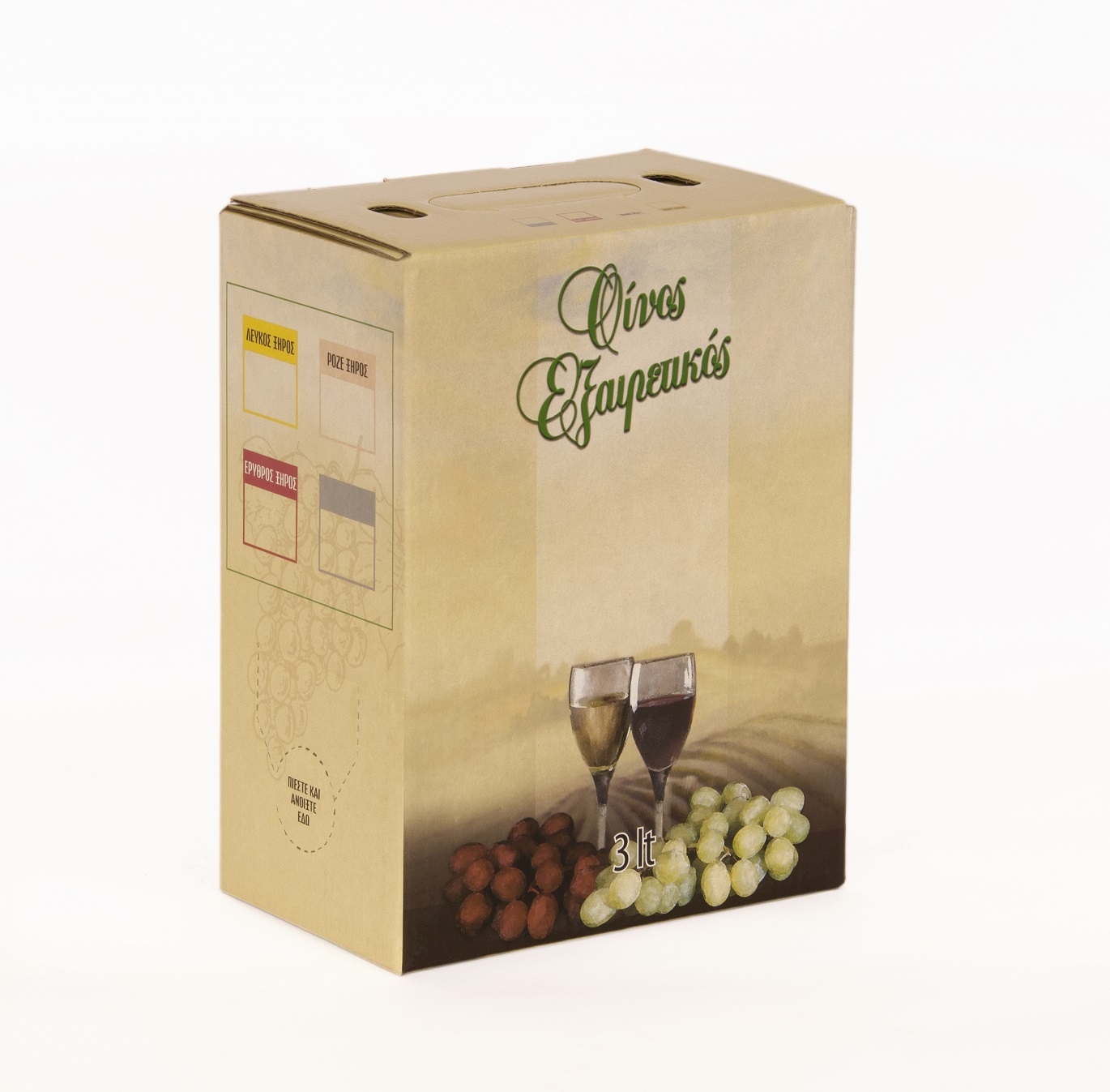 - Όλα τα χαρτοκιβώτια φέρουν ενδείξεις για "λευκό", "ροζέ" ή "ερυθρό" οίνο